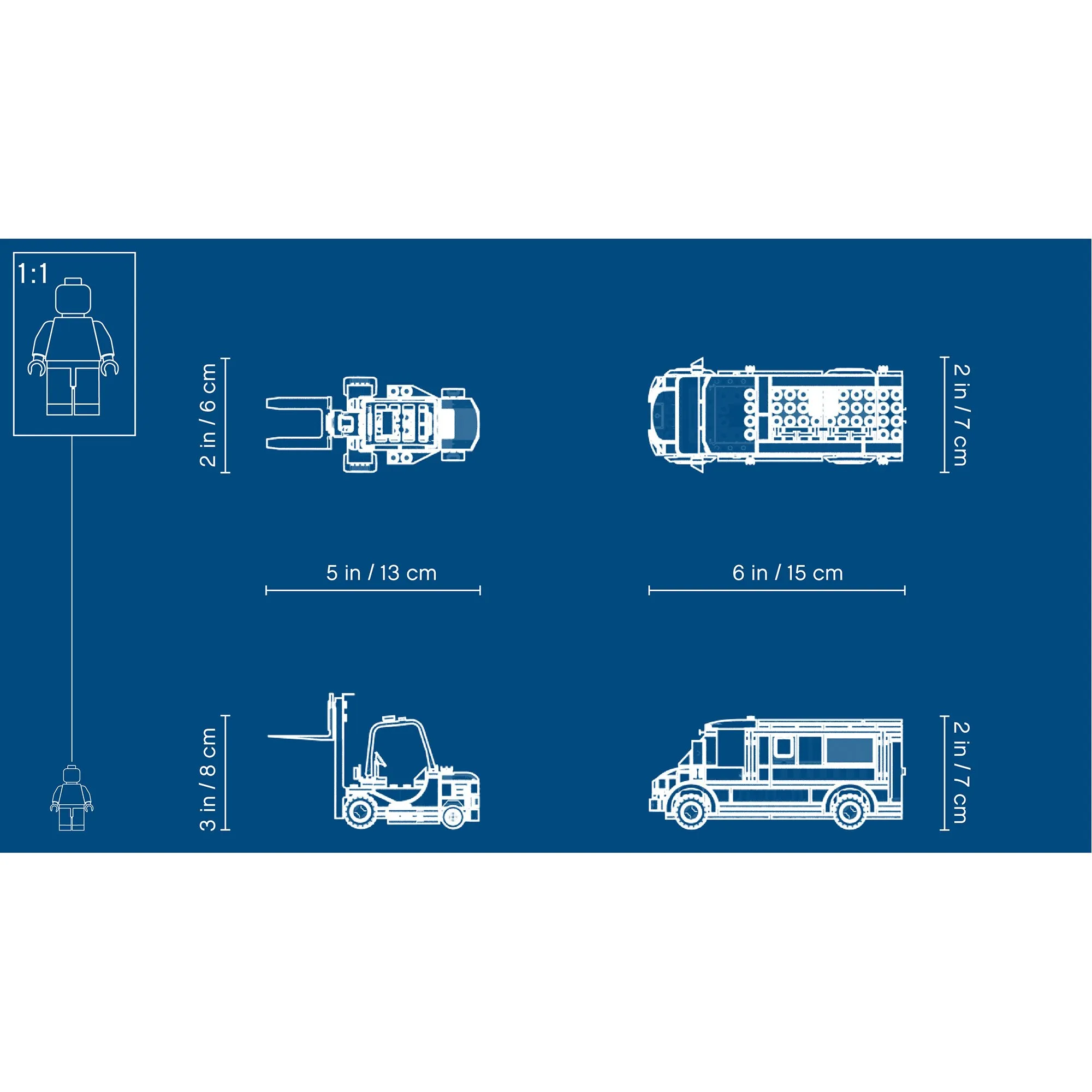 — Trenul marfar LEGO City 60198 măsoară în total peste 11 cm înălțime, 82 cm lungime și 6 cm lățime. Motorul are dimensiuni de peste 11 cm înălțime, 27 cm lungime și 6 cm lățime. Vagonul cu busteni se ridică la o înălțime de peste 5 cm, având 15 cm lungime și 6 cm lățime, în timp ce vagonul macara are 10 cm înălțime, 22 cm lungime și 5 cm lățime. Vagonul cu containere măsoară peste 9 cm înălțime, 18 cm lungime și 5 cm lățime, iar camionul blindat are peste 6 cm înălțime, 15 cm lungime și 6 cm lățime. Centrul de control are o înălțime de peste 21 cm, fiind lat de 8 cm și adânc de 12 cm. Stivuitorul măsoară peste 7 cm înălțime, 5 cm lățime și 12 cm adâncime. Informații despre greutatea exactă nu sunt disponibile.